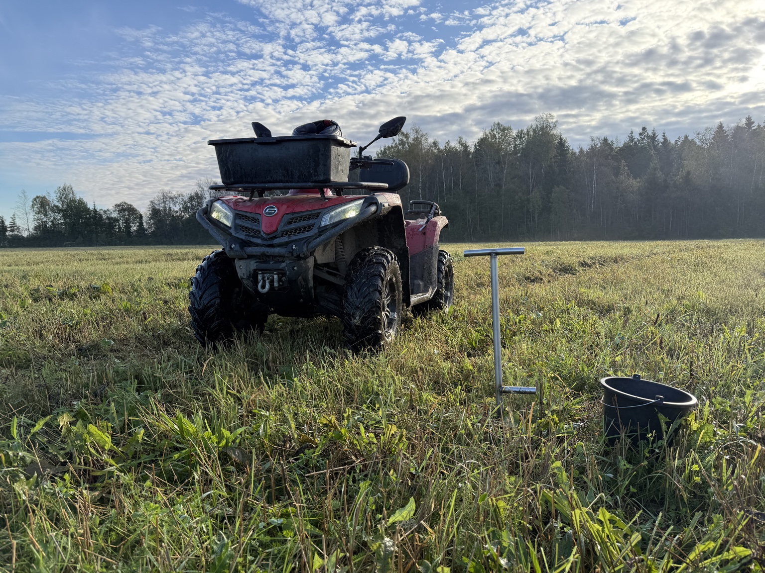 Proove võetakse ATV ja mullapuuriga. Kaardirakendus salvestab proovi kogumise trajektoori.
